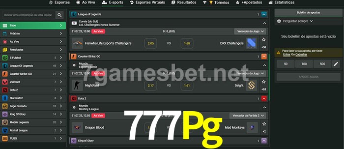 A aposta 777Pg oferece aos jogadores a experiência mais conveniente de apostas em eSports!